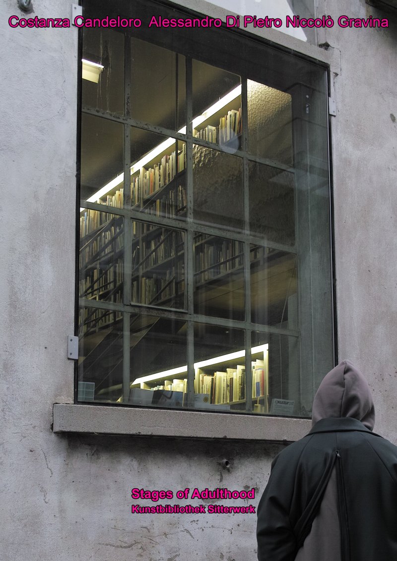New and recent works by Candeloro, Di Pietro and Gravina will be showcased within the Sitterwerk Art Library and Material Archive, a space in the guise of a now (in)accessible technological Kafkaesque Castle. “Stages of Adulthood” revolves around the urgent discomfort and eternally archeological quest of actualizing artworks from the past, an unconditional reflex at “looking at art for new models of political action and social understanding.”