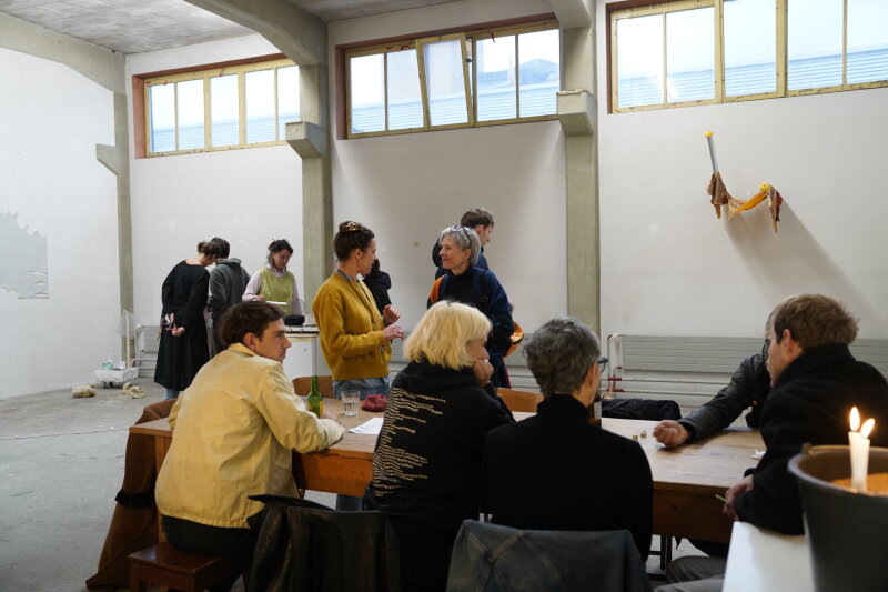 Auch während der fünf Wochen im Sitterwerk Gastatelier blieben die Künstler:innen dieser Arbeitsweise, die vor Ort und mit dem Ort stattfindet, treu. Sie suchten das Areal nach Materialien – meist übrig gebliebenen Resten – ab und stellten sich auf die Möglichkeiten und Menschen vor Ort ein. Durch Fiktionalisierungen und ästhetische Interventionen machen sie so Zusammenhänge sichtbar und übernehmen die Verantwortung für überholte Wahrnehmungen der Realität und deren Folgen.