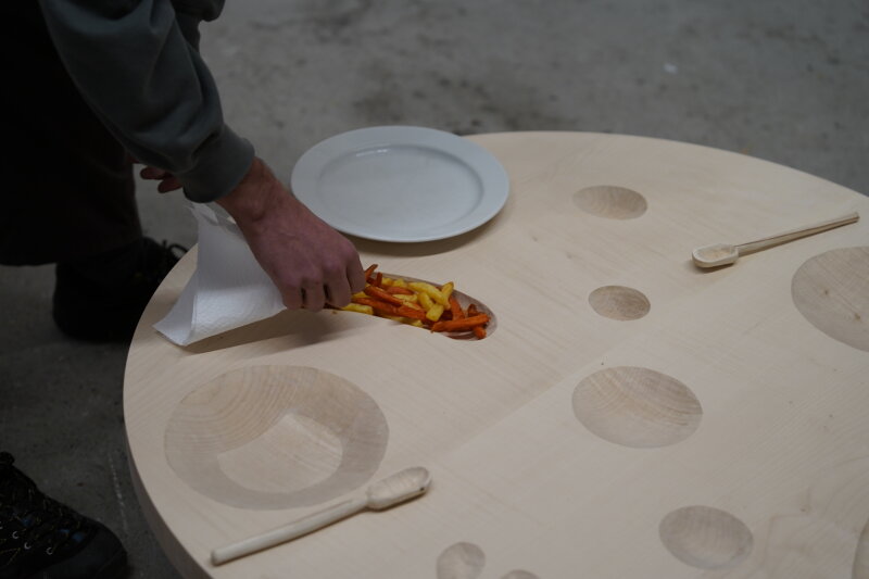 Das Kollektiv Conte Potuto – dem noch viele andere und immer wieder neue angehören – hat sich 2017 in Wien gegründet und schafft seither performative Installationen und temporäre Infrastrukturen für vorübergehende Gemeinschaften. Austausch und Interaktionen erzeugen dabei einen experimentellen Raum, in dem alles und jede zur Akteurin und jeder zum Darsteller wird. Die Geschichte, die entsteht, wird schliesslich von allen erzählt, so dass sie doch über den Moment hinaus besteht. Conte Potuto nutzt je nach Bedarf Skulptur, Farbe, Sound und Essen.