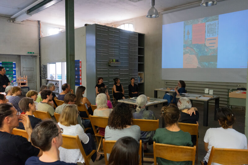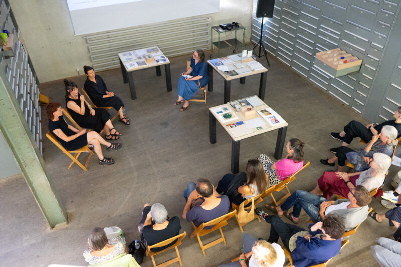 Mit Laura Panchaud (Designerin und Archivarin), Annaïk Lou Pitteloud (Künstlerin) und Helena Ťapajnová (Künstlerin und Handwerkerin), moderiert von Henrike Haug (Kunstwissenschaftlerin).