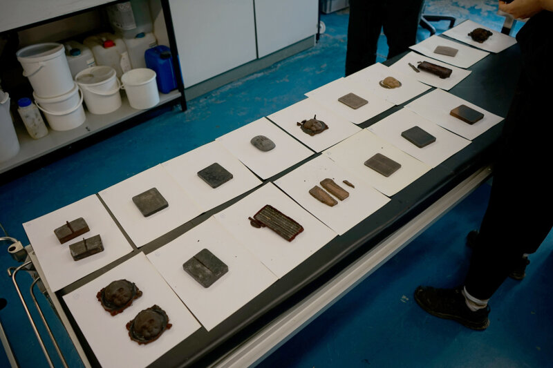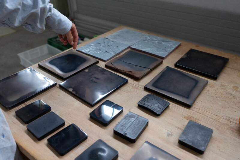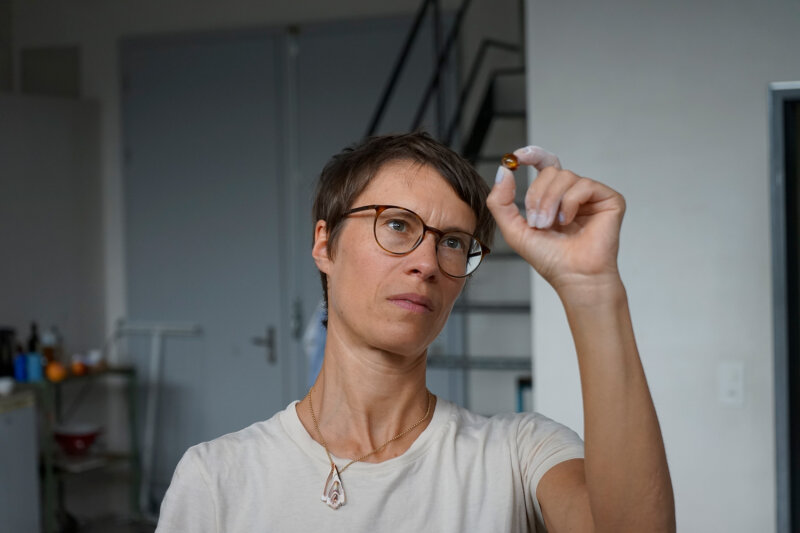 Vanessa Billy (*1978 in Genf/CH, lebt in Zürich) beschäftigt sich in ihrer künstlerischen Praxis mit ökologischen, materiellen und gesellschaftlichen Fragestellungen. In der Kunstbibliothek zeigt sie Versuchsreihen mit Tierblut – einem Material und Abfallprodukt, das sie seit mehreren Jahren erforscht, um biobasiertes Plastik für skulpturale Arbeiten zu entwickeln. Dabei greift sie auf historische Techniken wie Bois durci zurück, eine Mischung aus Blut und Sägemehl, die im 19. Jahrhundert als früher Kunststoff verwendet wurde. Billys Materialexperimente mit Tierblut reihen sich ein in ihre fortlaufende Auseinandersetzung mit Energie, Kreisläufen und unserem Verhältnis zu natürlichen wie künstlichen Ressourcen.