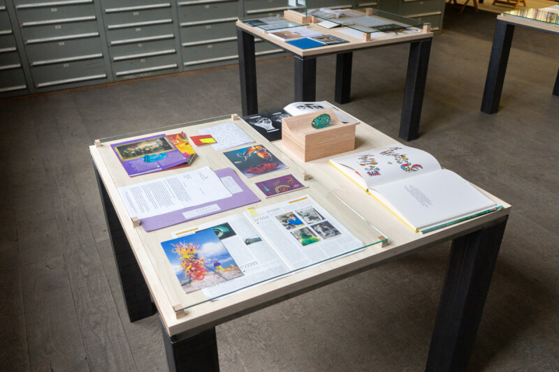 The exhibition Silicate + Sodium + Calcium offers insights into the personal archive of Venetian glass artist Marie Brandolini and her company, Laguna~B. The exhibition views both Marie Brandolini’s archive and the collections of the Sitterwerk as tools—not only to retrace the thought processes of an individual, but to reflect on someone or something. It is about shared knowledge and ways of generating knowledge that go beyond conventional archival practices and research methods.