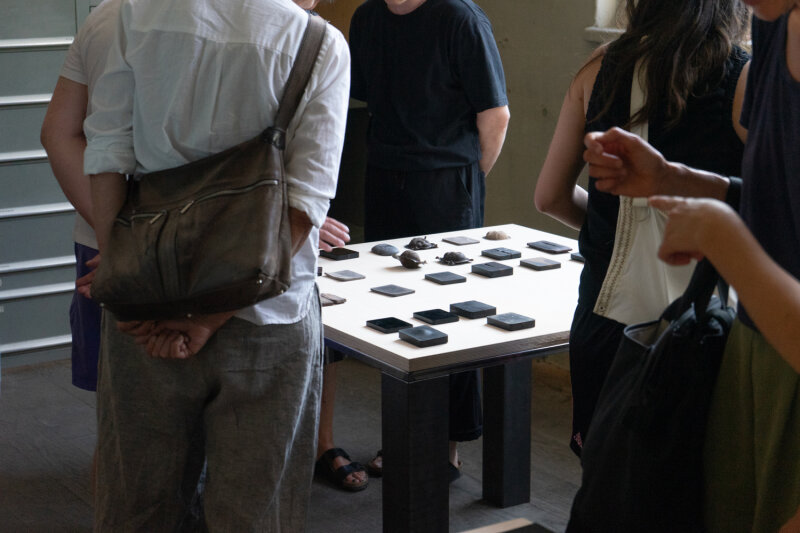 Vanessa Billy (*1978 in Geneva, Switzerland, lives in Zurich) deals with ecological, material, and social issues in her artistic practice. In the Art Library, she will show a series of experiments with animal blood—a material and waste product she has been researching for several years in order to develop bio-based plastic for sculptural works. In doing so, she draws on historical techniques such as bois durci, a mixture of blood and sawdust that was used as an early plastic in the 19th century. Billy's material experiments with animal blood are part of her ongoing exploration of energy, cycles, and our relationship to natural and artificial resources.